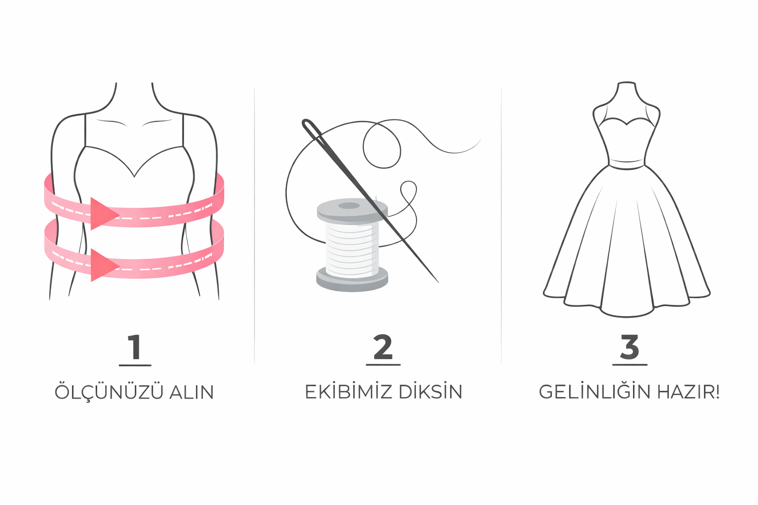 Hayalinizdeki gelinliği seçtiyseniz siparişinizi hemen oluşturabilirsiniz. Düğün tarihinize göre, üretim öncesinde güncel ölçüleriniz için sizinle iletişime geçiyoruz.