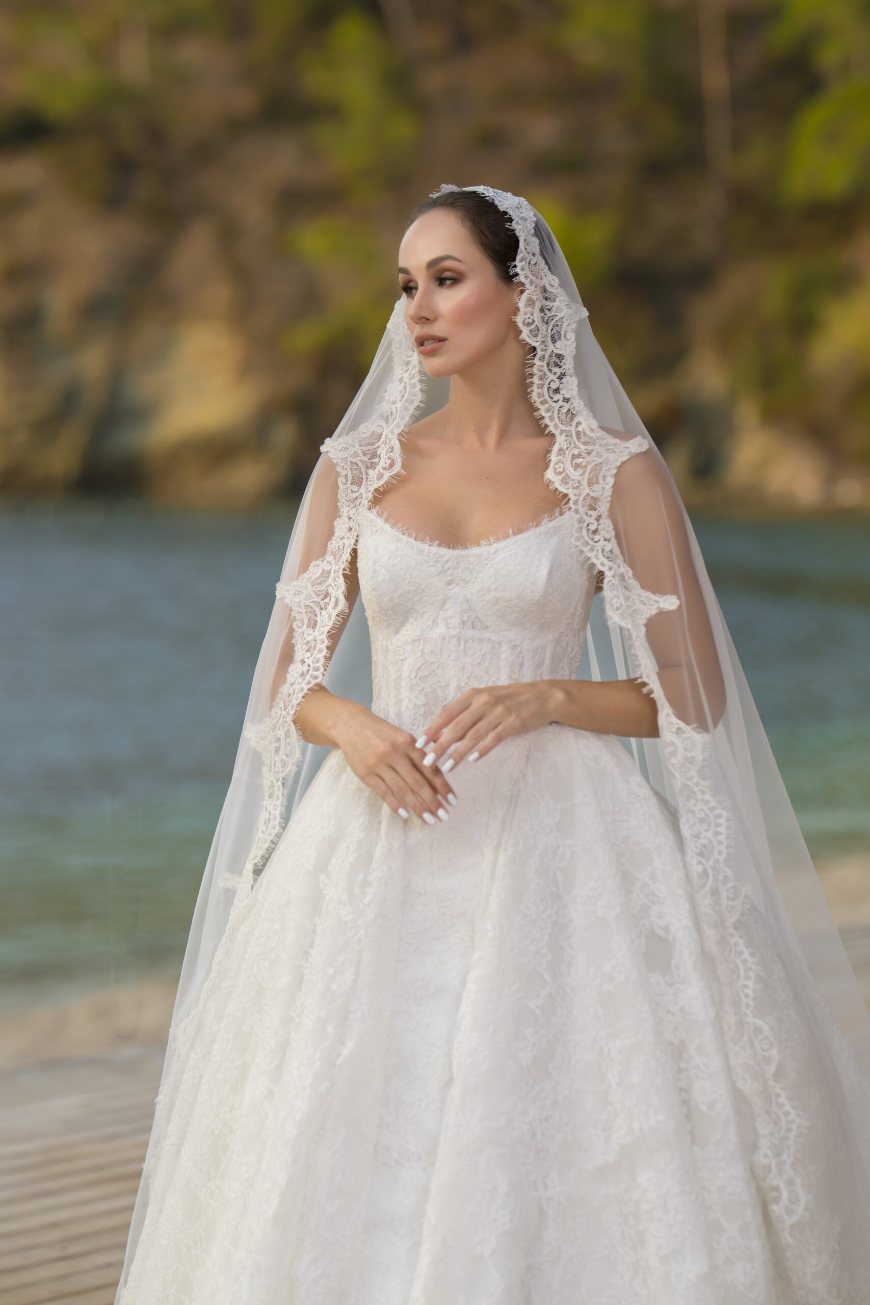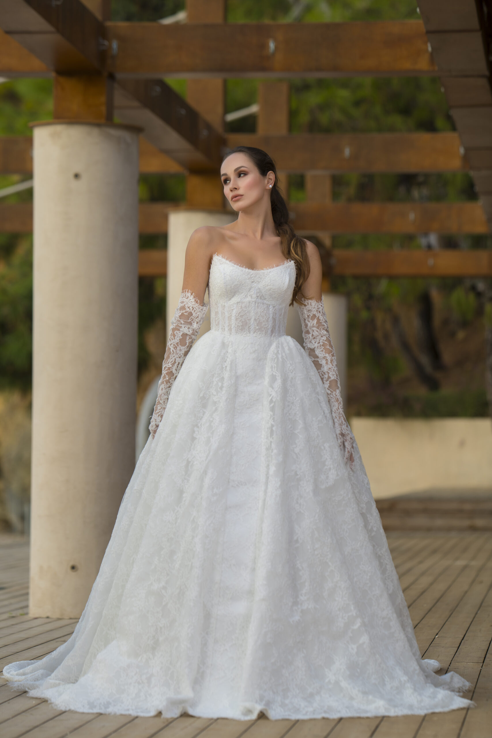 Mireya A Kesim Fransız Dantelli Straplez Yaka Zarif Gelinlik